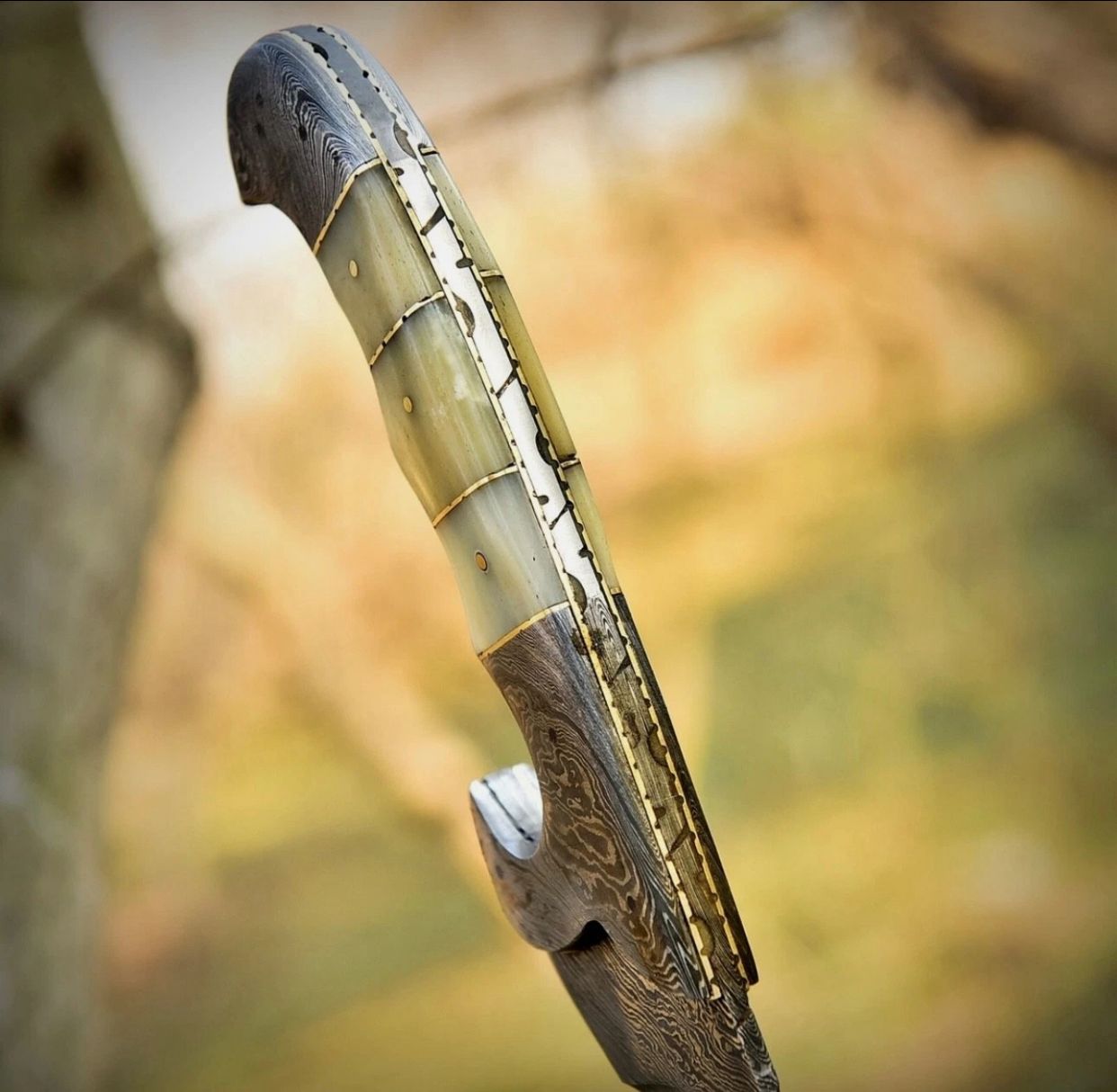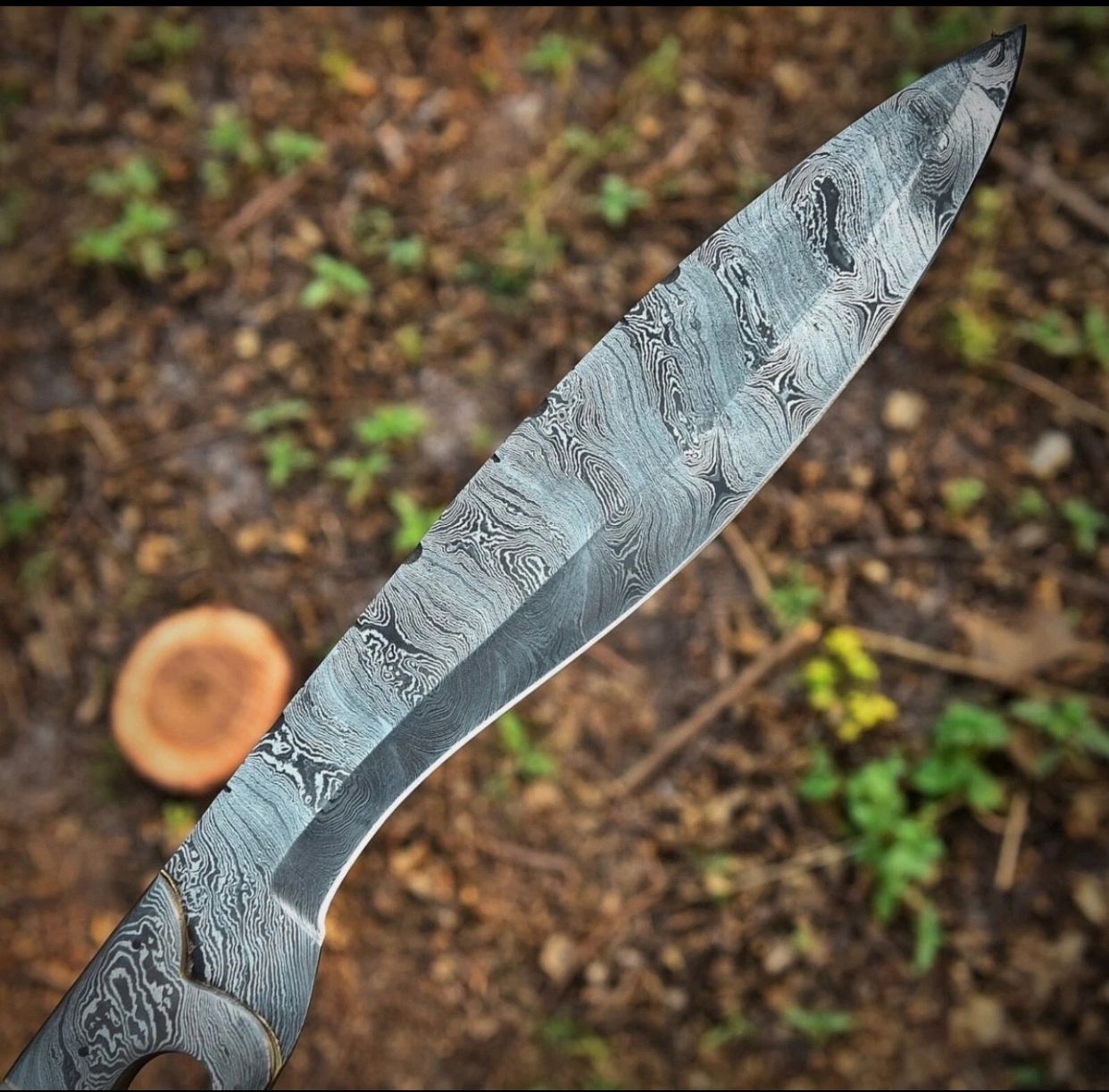 Damascus Steel Blade – Hand-forged with unique wave-like patterns, offering strength, durability, and a striking appearance.